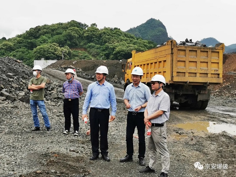 5月21日下午,浙江省機(jī)電集團(tuán)副總經(jīng)理陳存法率安企部部長(zhǎng)王國(guó)富、副部長(zhǎng)葛賢福、安全主管李俊一行深入我司麗新礦項(xiàng)目部檢查指導(dǎo)安全生產(chǎn)工作,浙江新聯(lián)民爆器材有限公司副總經(jīng)理馬福民、公司總經(jīng)理申屠建新等相關(guān)人員陪同檢查。