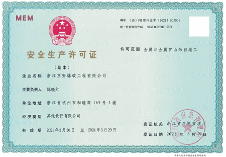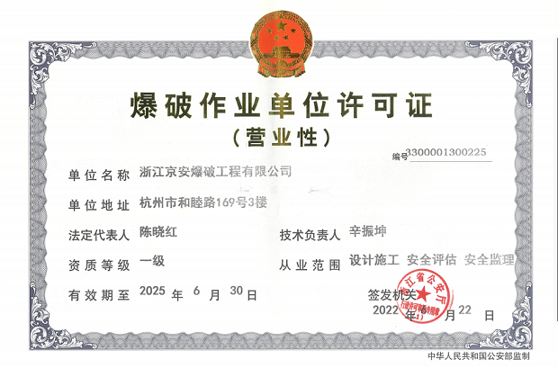 2022年爆破作業(yè)單位許可證一級(營業(yè)性)