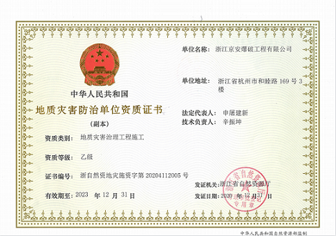 地質(zhì)災(zāi)害防治單位資質(zhì)證書(乙級)